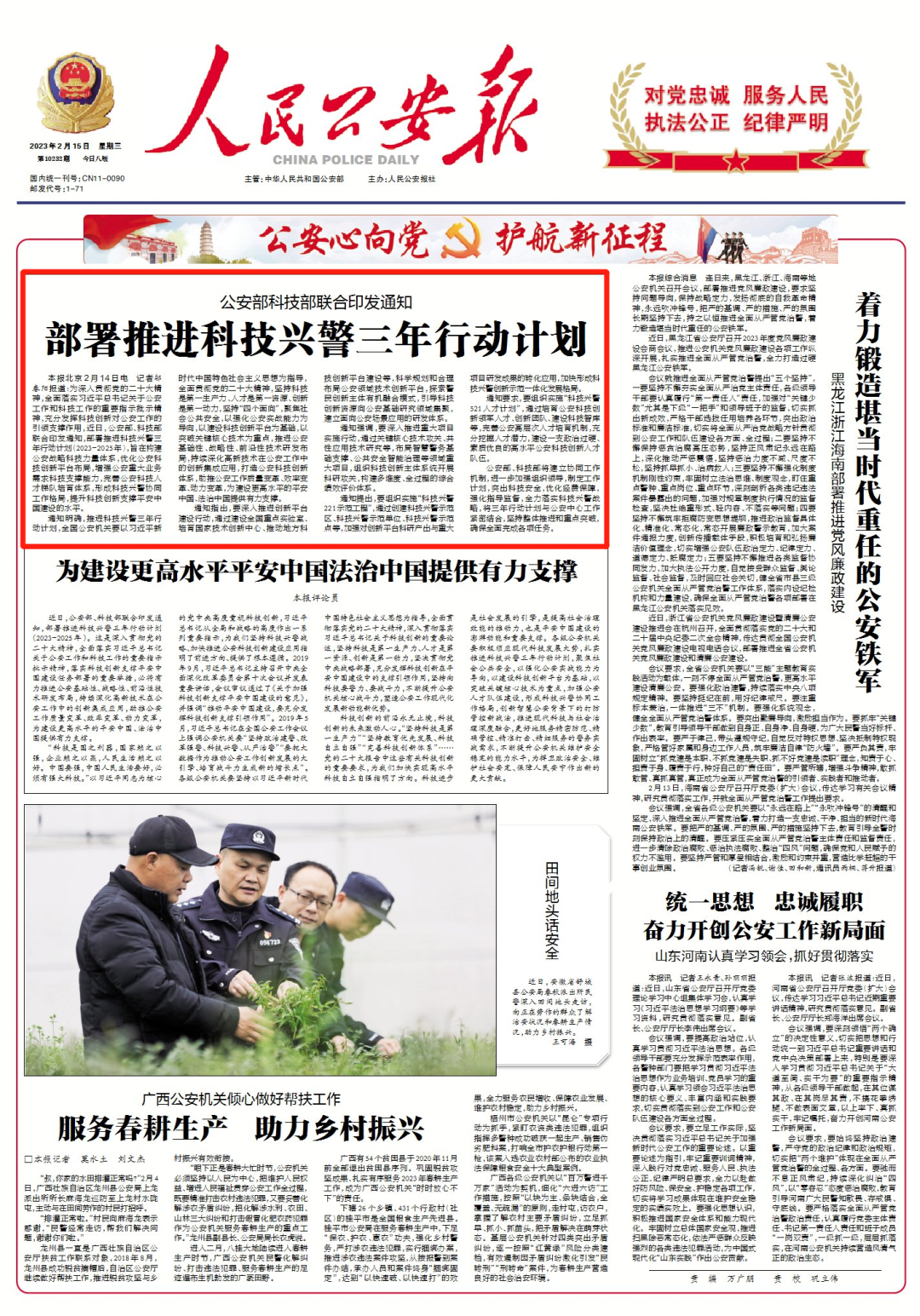 近日,公安部、科技部联合印发通知,部署推进科技兴警三年行动计划(2023-2025年),旨在构建公安战略科技力量体系,优化公安科技创新平台布局,增强公安重大业务需求科技支撑能力,完善公安科技人才梯队培育体系,形成科技兴警协同工作格局,提升科技创新支撑平安中国建设的水平。