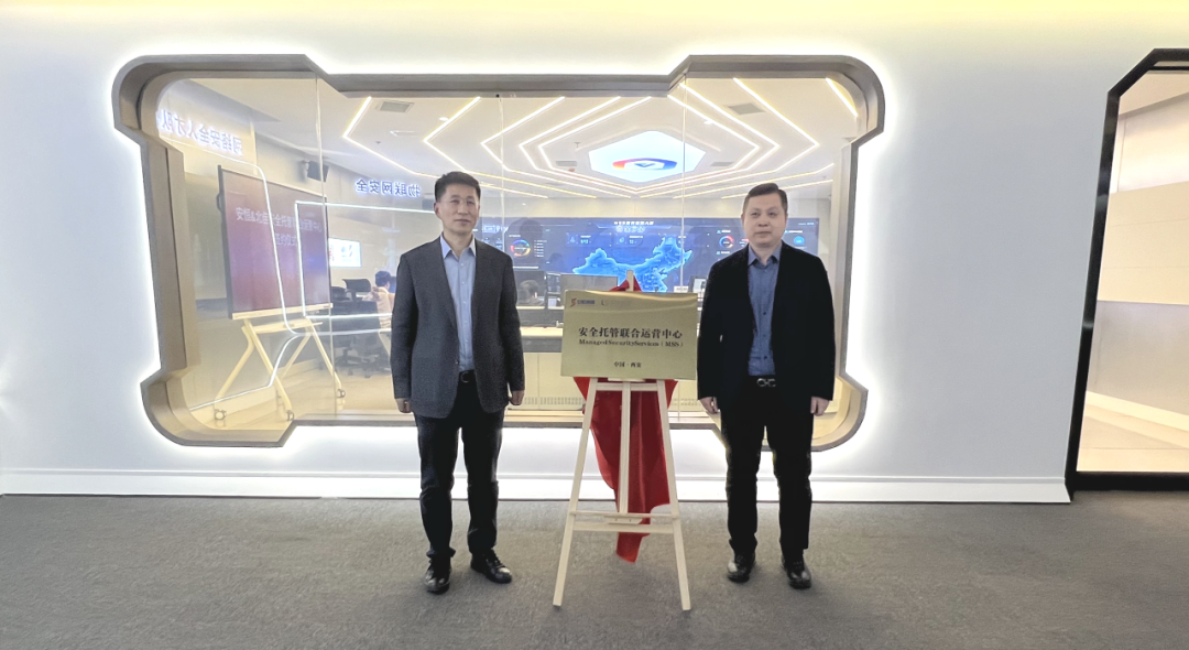 最后,芦健、吴涛、查玲玲、郝大中、王峰、刘智刚代表双方完成剪裁,芦健和郝大中代表双方揭牌,安全托管联合运营中心正式成立。未来,双方将依托此中心,立足西安,辐射陕西乃至西北地区,为企业数字化发展筑牢安全屏障。