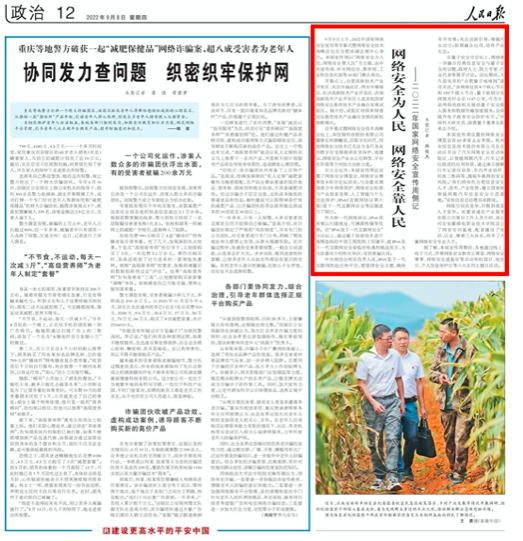 人民日报:《关注“国家网络安全宣传周”|网络安全为人民,网络安全靠人民》