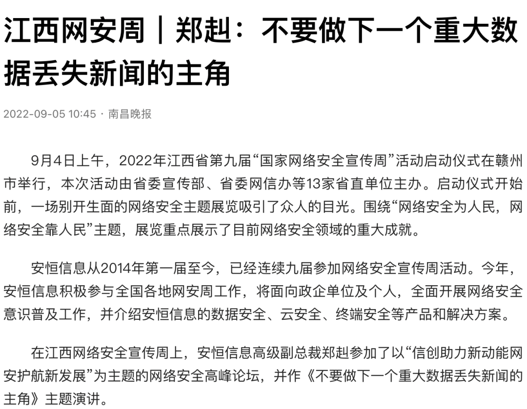 《江西网安周|郑赳:不要做下一个重大数据丢失新闻的主角》