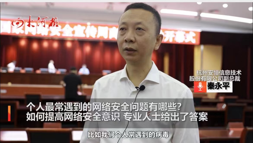 9月5日,国家网络安全周商丘市活动开幕。网络安全需要每个人共同参与。关于个人如何做好网络安全防护?对此,尊龙凯时信息技术股份有限公司副总裁秦永平给出了建议。