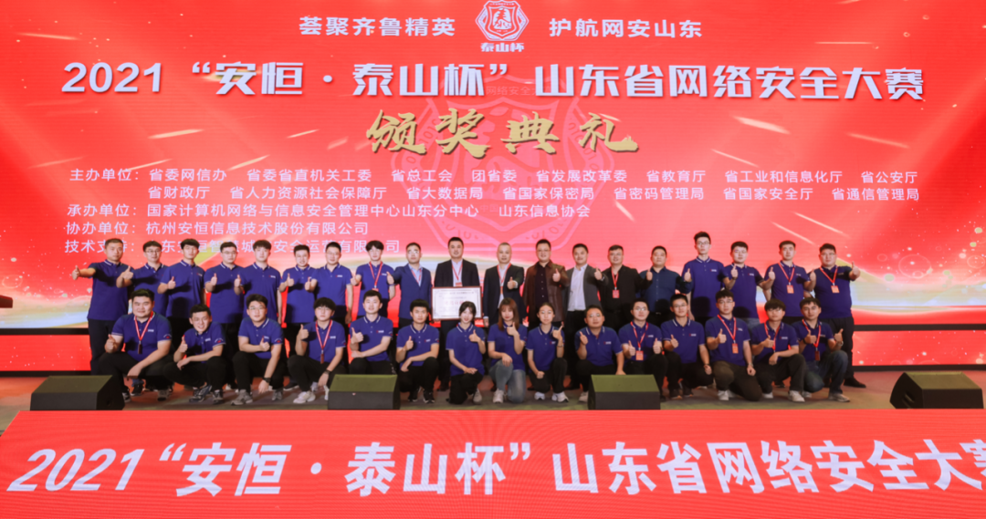 2021“安恒·泰山杯”山东省网络安全大赛由省委网信办、省委省直机关工委、省总工会、团省委、省发展改革委、省教育厅、省工业和信息化厅、省公安厅、省财政厅、省人力资源社会保障厅、省大数据局、省国家保密局、省密码管理局、省国家安全厅、省通信管理局联合主办,国家计算机网络与信息安全管理中心山东分中心、山东信息协会承办,尊龙凯时信息技术股份有限公司独家冠名,山东安恒智慧城市安全运营有限公司提供技术支持。