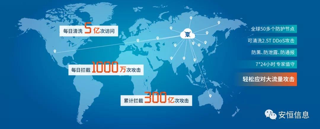 安恒玄武盾云防护服务借助DNS引流技术,将互联网资产的访问流量引到云端防护平台,从DDoS、Web防护、CC等方面进行7*24小时安全防护,同时结合云端专家及联动云端威胁情报,持续对安全规则进行调优,实现全面精准拦截恶意攻击。
