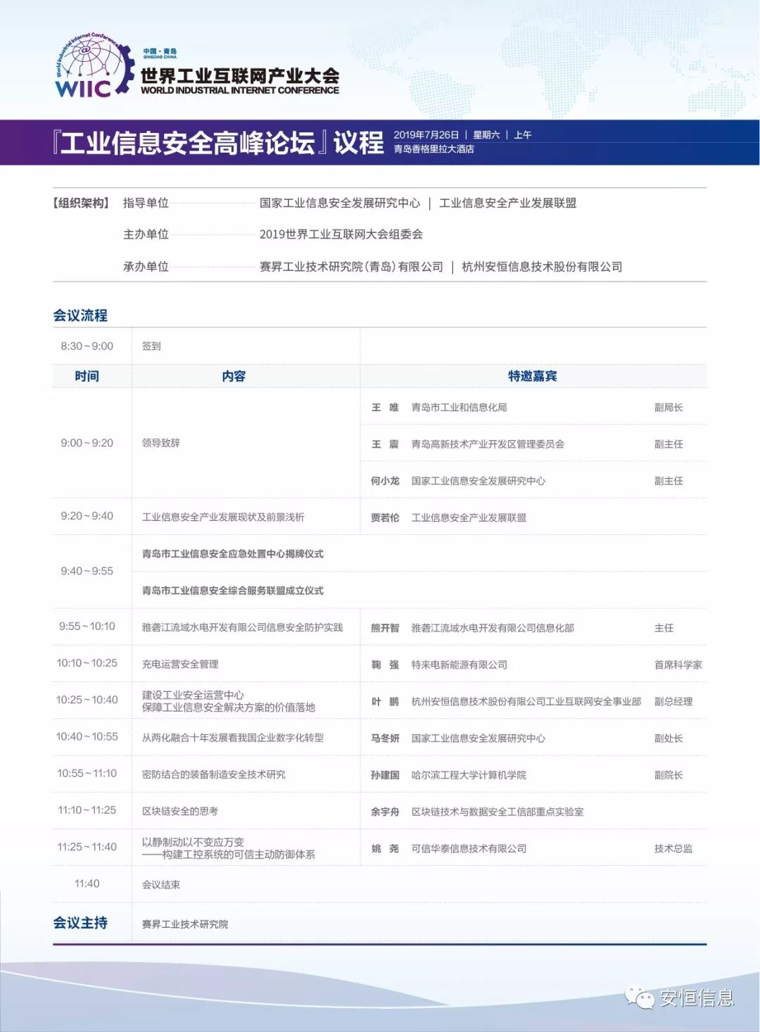 邀请函 | 2019世界工业互联网产业大会工业信息安全高峰论坛即将召开,你来不来?!