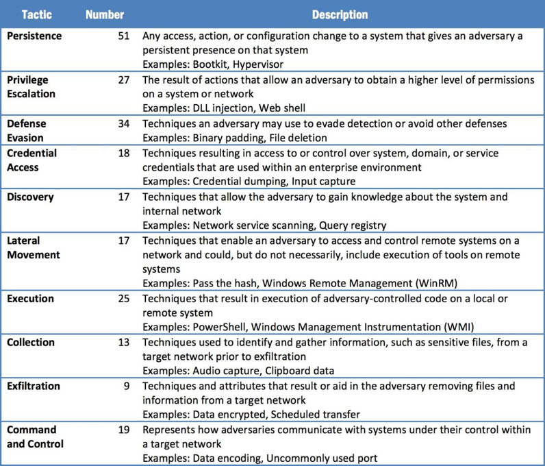 在图11中,我们展示了框架中包含的ATT&CK战术的示例。该框架包括对手细节、战术、技术和缓解措施。Mitre已经创建了许多工具来补充其框架,例如,他们有一个攻击导航器,允许用户通过从其框架中提取数据来计划安全测试。