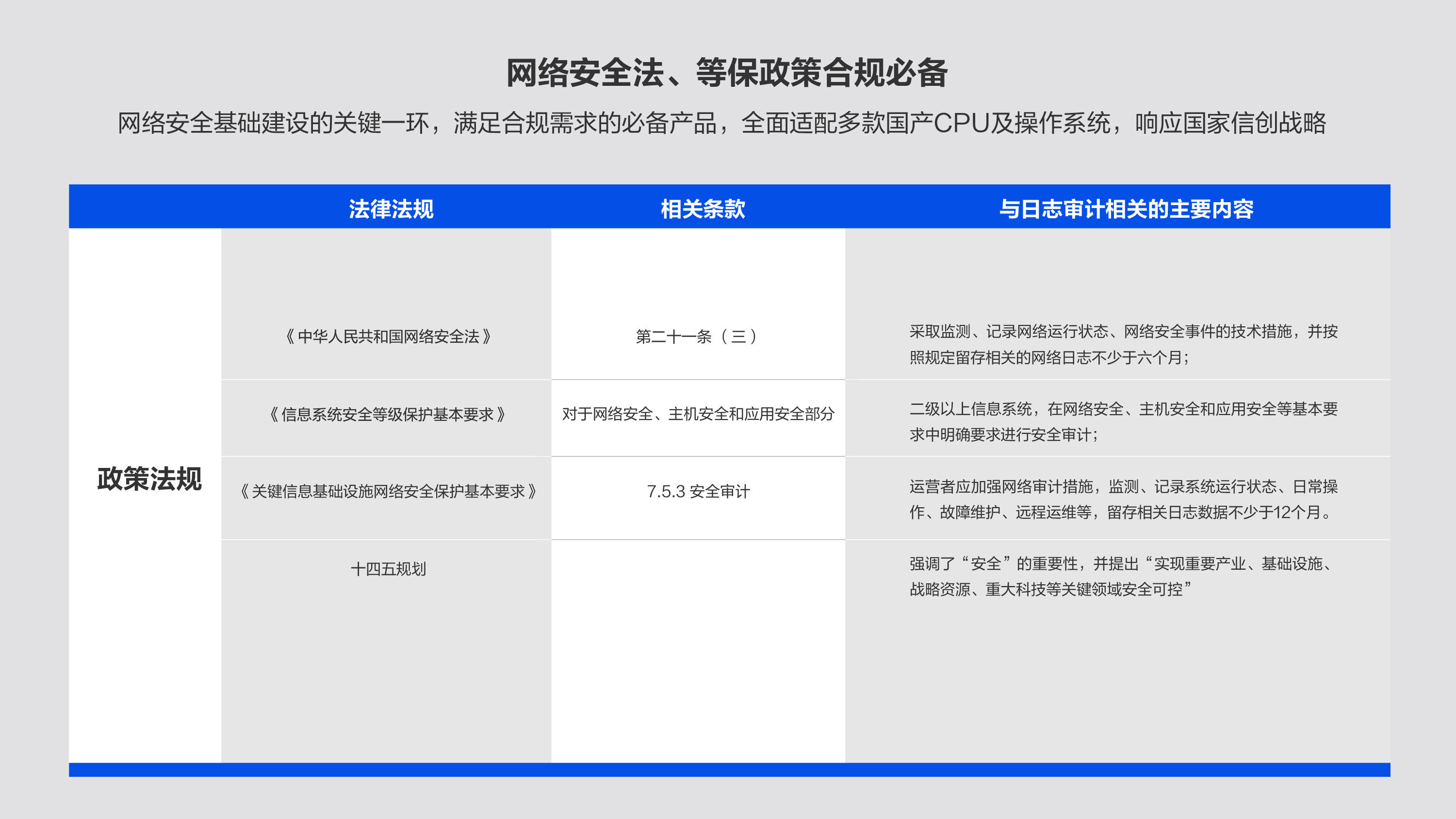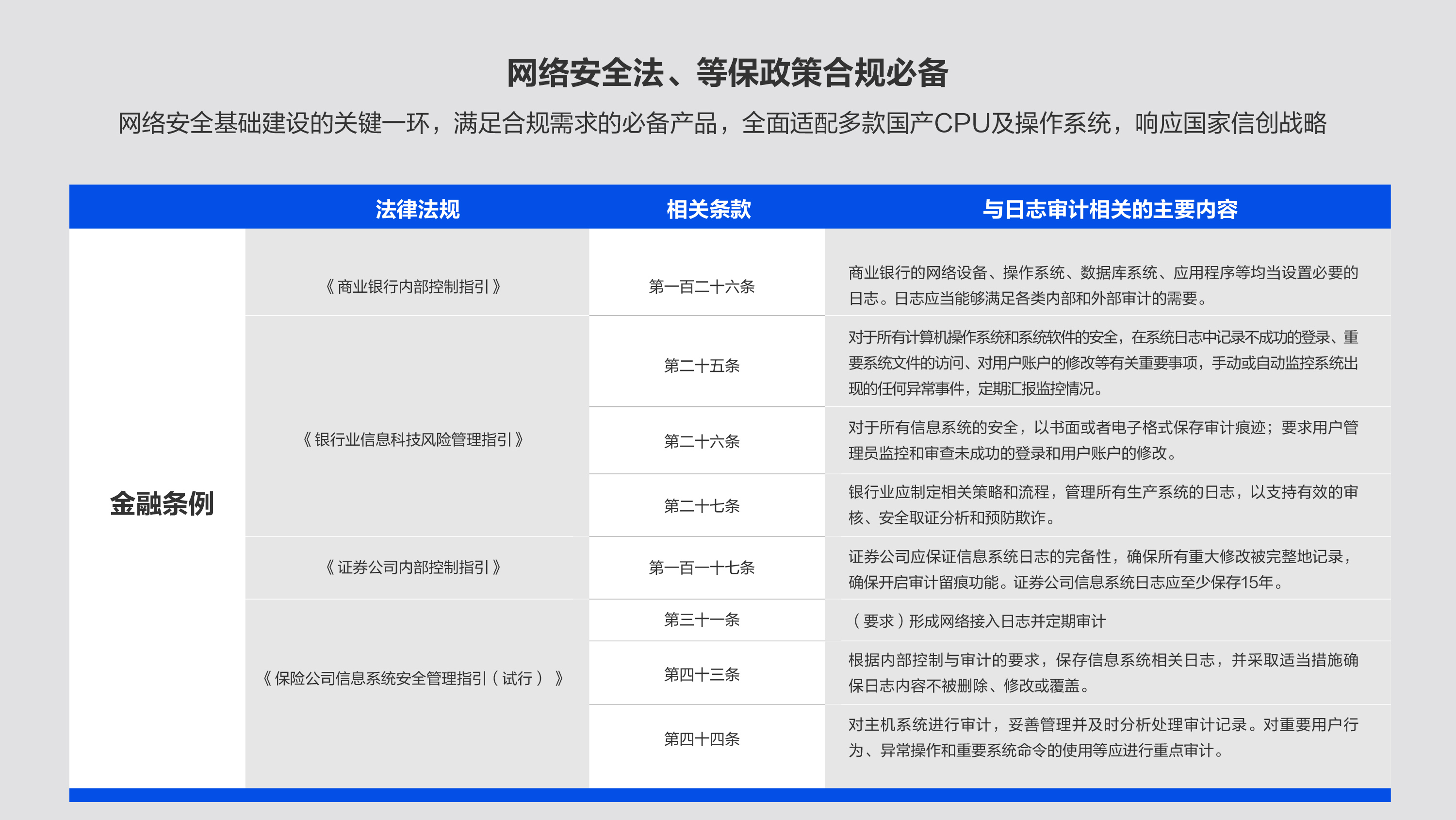 14年项目实践,支持250+品牌,5000+种日志类型:全面支持Syslog、SNMP Trap、HTTP、ODBC/JDBC、WMI、FTP、SFTP、TCP、KAFKA、SMB协议的日志收集;支持阿里云SLS日志的采集;支持使用代理(Agent)方式提取日志收集。可以覆盖主流硬件设备、主机及应用,保障日志信息的全面收集。