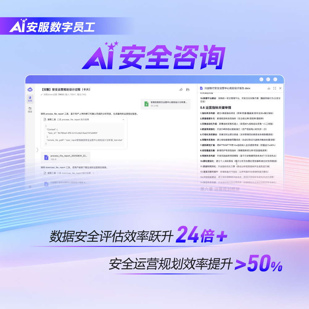 1.安全数字顾问:聚焦安全专业领域,针对咨询需求提供精准化、专业化应答。